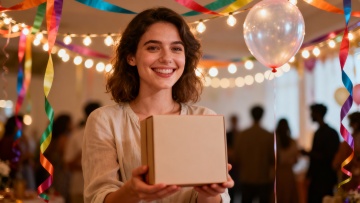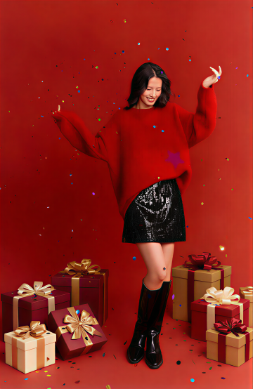 外国人青年女性商品宣传图,要有节日氛围感,不要含有特定节日元素,商品上不要带有标志和logo