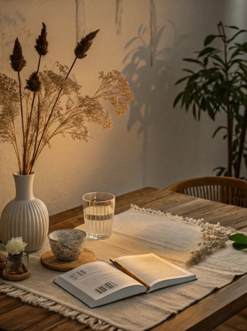 暖光木雕风台灯,置于书本之上,营造温馨质朴的居家氛围,柔和光影交织,尽显实景生活美学。