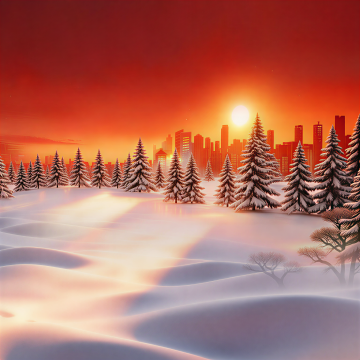 一张具有超写实摄影风格的冬季雪景城市海报,画面主体为近景细腻的白雪覆盖的地面,雪的质感呈现出蓬松、带有细微冰晶反光的特征,阳光从画面上方柔和洒下,形成明亮的高光区域和淡淡的蓝色阴影,营造出清冷而宁静的氛围。远景是被白雪覆盖的连绵山脉轮廓,天空呈现出清澈的浅蓝色并带有少量白色云彩。在保持整体色调(以纯净的白色和浅蓝色为主)和光影效果(柔和顶光、清晰的明暗过渡)的基础上,融入城市元素:画面中景处有被积雪覆盖的现代城市建筑群剪影,屋顶和建筑边缘堆积着厚实的白雪,部分建筑窗户透出温暖的黄色灯光,与冷色调的雪景形成对比。同时,天空中飘洒着轻盈的雪花,雪花形态清晰可见,部分雪花落在前景的雪地上和建筑上,增强冬季氛围。整体构图采用近实远虚的景深效果,视觉焦点集中在前景的雪地纹理和中景的城市建筑轮廓上,传达出冬日城市的静谧与祥和之美,信息传达简洁明了,符合冬季主题宣传的设计感。