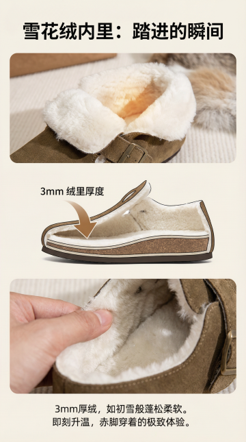 尺码与建议 - 真诚的指引 视觉: 左半边为清晰的尺码表(强烈建议按内长厘米数选择)。右半边为一双穿着厚袜的脚放在尺码测量图上的示意图,并加注提示:“建议选择比日常运动鞋大一码,为厚袜预留空间。” 文案: 找到最契合的尺度。我们关心你穿上后的每一分感受。