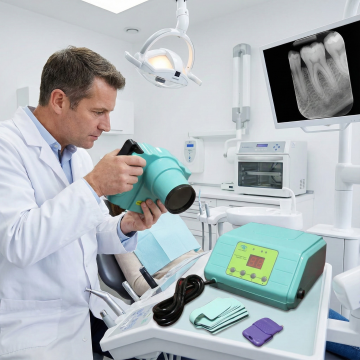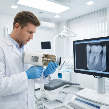 生成1:1图,医生使用此 Xray 机器,欧美医生,高端牙科诊所,生成高清的 x牙片