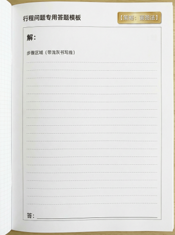 “数学考试用可打印答题卡模板。背景为干净的白色,配有浅灰色方框和书写线,供学生填写解答。板块标注清晰,包括:‘1. 直接计算’、‘2. 应用题(必须包含“解:”和“答:”)’、‘策略标签:【______】’。设计极简、教育感强,看起来是家长和学生可直接使用的实用工具。不包含任何已填写的答案,仅展示结构布局。”