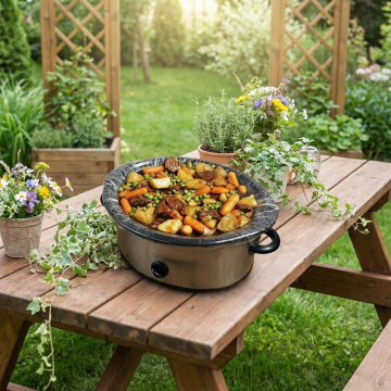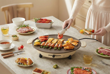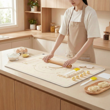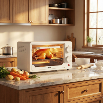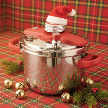 现代简约风3D渲染,重拟物设计呈现真实质感,塑料光泽与木质厨房融合,营造温馨舒适实景感,节日家宴氛围浓郁。