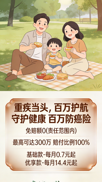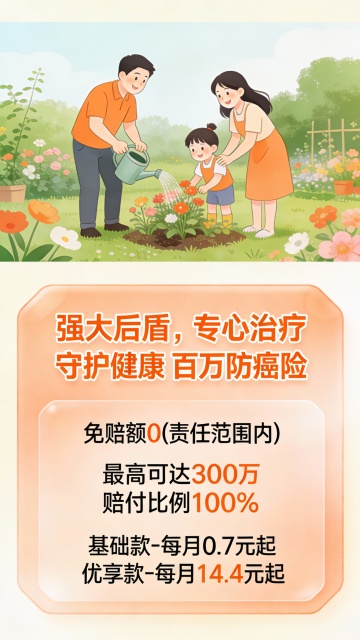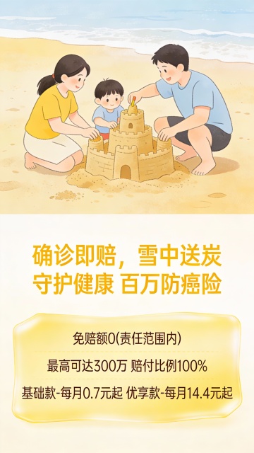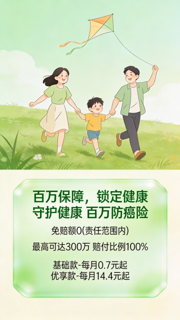 方案一:暖白亲子互动风:米白底色绘卡通母子牵手,标题暖粉渐变,点缀淡金爱心图标,突出温情保障