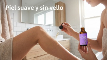 以图中的脱毛精华液为元素,欧美女人用这个脱毛精华液在脱毛,物体主体特征不变,设计6张跟脱毛精华液有关的图,可以适当加一些西班牙语的文案点缀一下,比例 16:9
