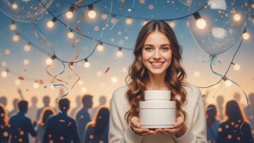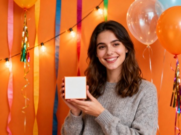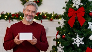 外国人年轻女性拿着礼盒的宣传图,要有圣诞节氛围感