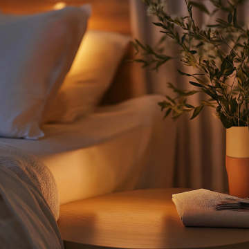 夜晚城市背景的办公场景,从不同视角展现。大型落地窗,窗外是华灯初上的繁华都市夜景,天空呈现出深蓝到橙红渐变的暮色。木质桌面上,一台打开的笔记本电脑,旁边有一个点燃的玻璃烛台,烛光温暖。整体画面采用写实风格,光影效果突出,营造出宁静而专注的办公氛围,色调以深蓝、橙色和暖黄为主,光线柔和,细节丰富,具有电影般的质感。