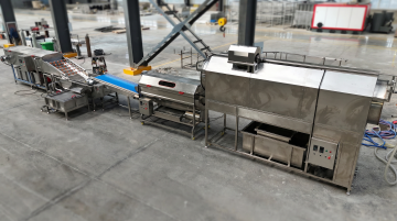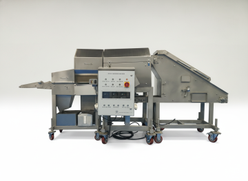 现代化高科技实验室场景,画面干净规整,适合作为背景。明亮的白色与蓝色调为主,洁净的白色墙面镶嵌着深蓝色方块瓷砖,地面为光滑的浅灰色。前景有两位身着全套白色防护服、佩戴护目镜和口罩的科研人员,一位正坐在操作台边专注查看电脑屏幕,另一位站立于大型精密仪器前操作控制面板。实验室中央和后方分布着多台先进的白色与银色相间的分析仪器、设备,带有蓝色显示屏和控制面板,仪器间有金属管道和电缆有序连接。右侧有机械臂装置,左侧前景有透明玻璃容器和绿色植物点缀。整体光线均匀柔和,以冷色调为主,营造出专业、严谨、先进且一尘不染的科研氛围,构图平衡,空间感强,视觉层次分明,信息传达清晰,符合高科技科研环境的审美与功能需求。