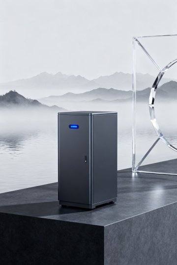 未来感与科技感交织,3D风呈现清透梦幻的虚拟现实场景,简约主义设计融合粒子风元素,星夜岩石之上,空气清新器静谧伫立。
