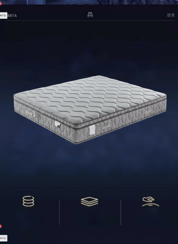 一张温馨的卧室场景,中央是一张铺着棕色床垫的床,床垫表面柔软舒适,带有自然的纹理。阳光透过窗户洒在床垫上,形成温暖的光斑。床头柜上摆放着一盏柔和的台灯和一盆绿色植物,整体色调温暖柔和,营造出舒适、放松的居家氛围。