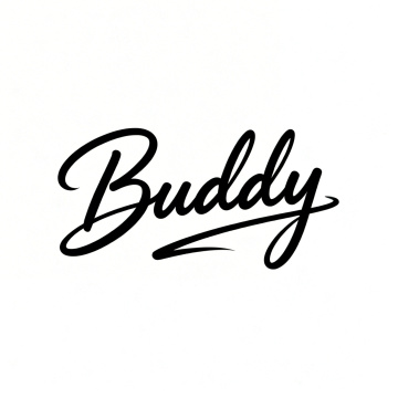现代感手写体“Buddy”,优雅流畅的线条,融合时尚与简约主义,单色设计风突出印刷质感,大字风格强化视觉冲击。