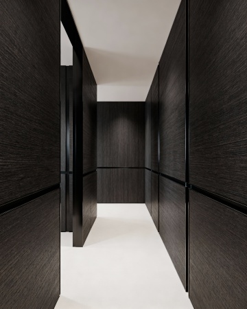半透明磨砂玻璃材质,表面有细密的垂直条纹肌理,光线从一侧柔和穿透,形成朦胧的光影渐变效果,玻璃后方隐约可见模糊的室内景象轮廓,整体色调变换为静谧的深海蓝与浅灰紫渐变,条纹肌理的反光呈现出蓝紫色的微妙光泽,保持玻璃材质的通透感与磨砂质感,光影层次丰富,营造出冷静而优雅的氛围。