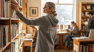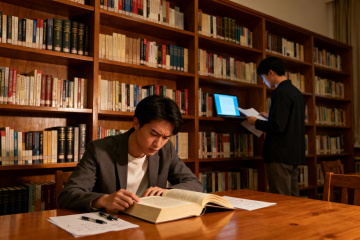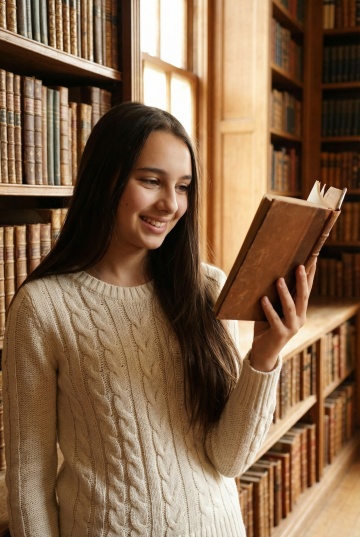 图书馆内,光影交织,弥散光风营造静谧文艺氛围,简约主义设计尽显优雅。