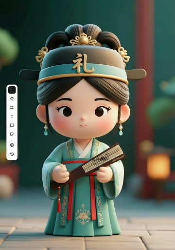 软3D风可爱卡通人物,身着古装,色彩柔和,表情生动,充满童趣。