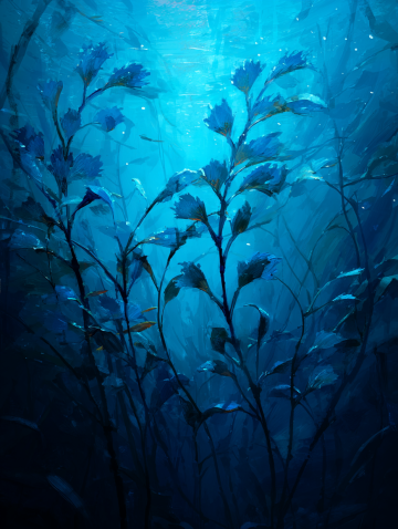 梦幻插画风,虚拟自然景象,荧光植物点缀,营造神秘森林氛围。