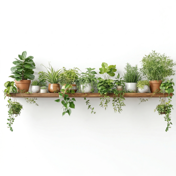 简约现代风格绿植组合海报,六个不同种类的室内绿植盆栽,包括龟背竹、琴叶榕、多肉植物组合、散尾葵、橡皮树和仙人掌,分别种植在黑色哑光金属盆、白色陶瓷异形盆、灰色水泥质感高脚盆、木质托架盆、编织纹理盆和粗陶素烧盆中,整体采用柔和的浅灰色背景,顶部单侧柔光照射形成轻微阴影,绿植叶片色彩鲜亮饱和,展现自然生机,构图采用上下两排均匀分布,每个盆栽间距适中,保持清晰的视觉层次,突出绿植的形态美感与不同花盆材质的质感对比,营造清新雅致的室内园艺氛围。