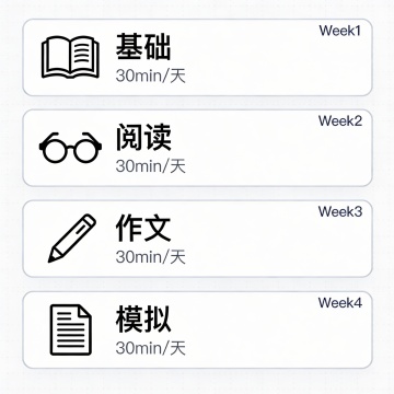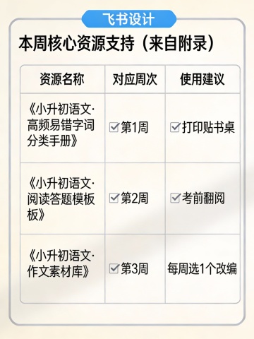 Top: bold title "小升初语文4周提分计划" in dark blue.