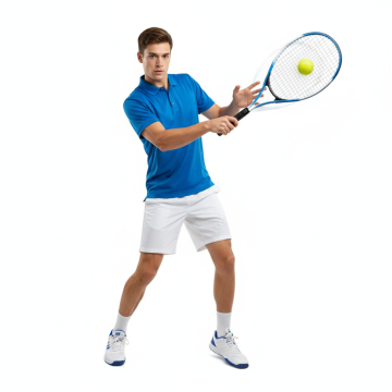 生成一张年轻女性用这个网球拍打网球的图片,要求白底图