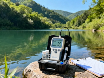 写实摄影风格的山水风景,清晨薄雾笼罩的宽阔湖面,湖水如镜般倒映着远处连绵起伏的墨绿色山峦,山体呈现出岩石的纹理和植被覆盖的细节,湖岸两侧点缀着低矮的绿树和棕色的草地,水面平静无波,天空是淡蓝色带有柔和的晨光,整体氛围宁静悠远,画面采用对称构图,景深清晰,光影柔和,色彩以蓝绿色和棕色为主调,展现出自然景观的真实质感和静谧之美。