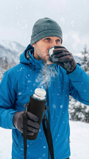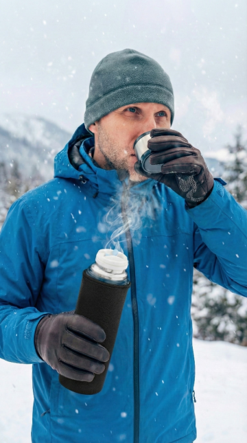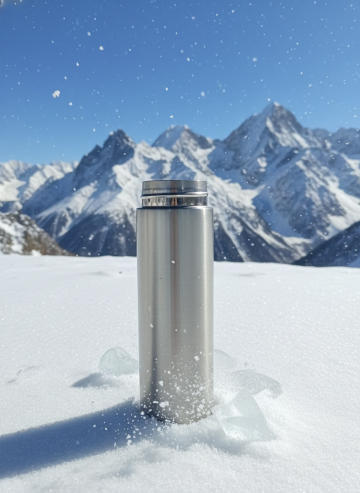 超高厚度保温杯放置于雪地里面