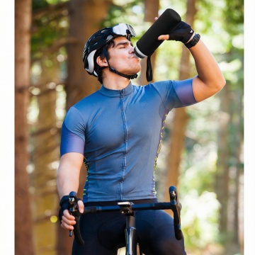 将图片一中男士手中拿 着的黑色杯套换成图片二中的青蓝色杯套,其他不变
