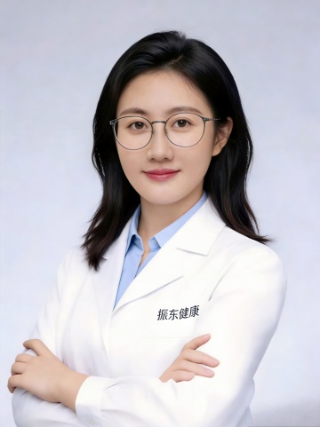 一位亚洲女性医生的证件照,她穿着洁白挺括的医生白大褂,内搭浅蓝色衬衫,双臂自然交叉于胸前。她的头发梳理得整洁利落,露出光洁的额头和温和的面容,嘴角带着亲切自然的微笑,眼神明亮有神,充满专业与亲和力。背景为纯白色,光线均匀柔和,突出人物主体,整体画面简洁干净、专业正式,符合证件照的规范和职业形象。