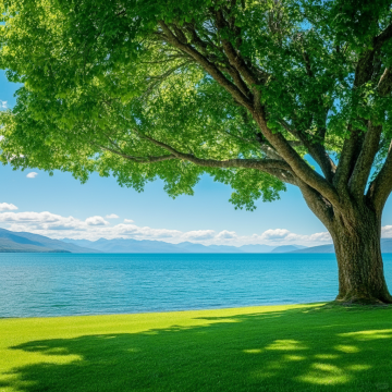 油画风湖畔日落,光影交融,静谧浪漫,清透柔和的色调营造梦幻实景感。
