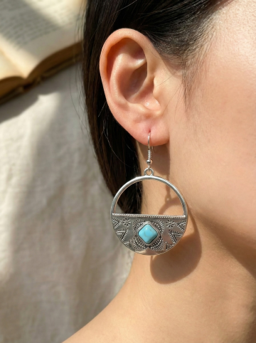 帮我把图中耳钉戴在耳朵上 耳钉长4.8cm宽3.3cm