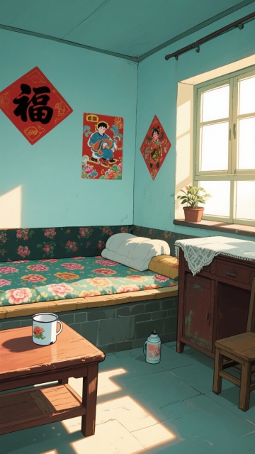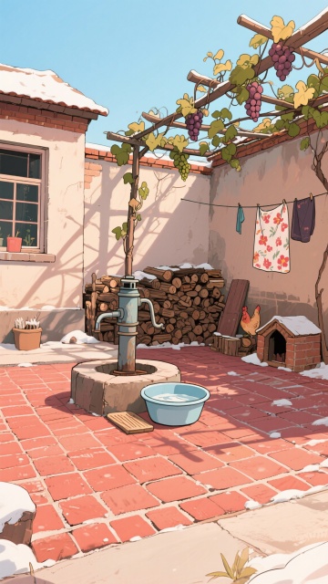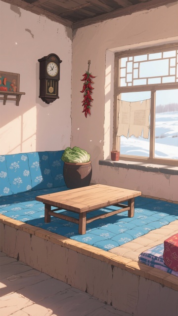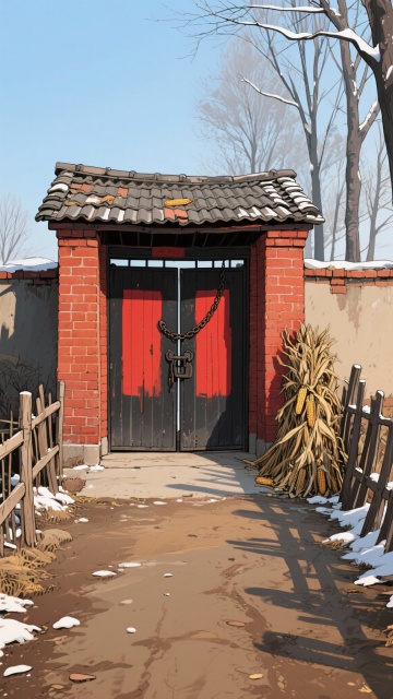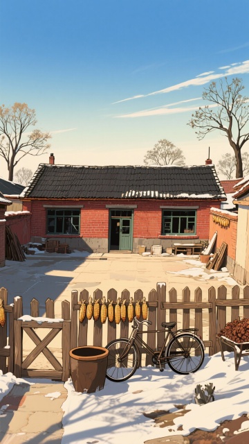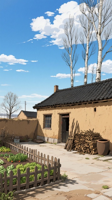 东北农村场景,二次元画风,不要人,空镜头,不要雪