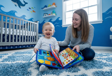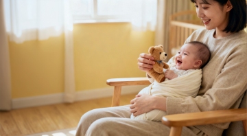 一位穿着白色吊带连衣裙的长发女子斜倚在柔软的米色沙发上,双手高高举起一个穿着白色连体衣的婴儿,婴儿悬空舒展着四肢,两人脸上洋溢着幸福灿烂的笑容。温暖柔和的自然光从窗外洒落,透过轻盈的白色纱帘形成朦胧的光影效果,照亮了整个室内空间。整体画面呈现出温馨、治愈的氛围,采用写实的摄影风格,色彩以柔和的米白色调为主,光影过渡自然,细节清晰,捕捉到母子间亲密互动的美好瞬间。