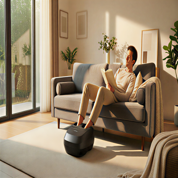 现代简约风格,舒适客厅场景,风扇设计流畅,营造温馨氛围。