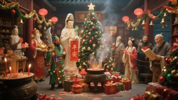 国潮风圣诞树,融合中式元素与3D重拟物设计,鎏金龙顶、红灯笼、水墨折扇与浮雕卷轴,营造喜庆梦幻的节日氛围。中华千古文化源远流长