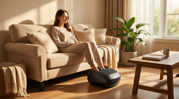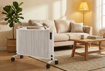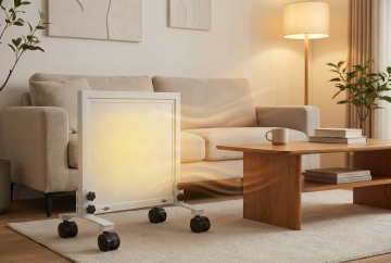 一张温馨的卧室场景,中央是一张铺着棕色床垫的床,床垫表面柔软舒适,带有自然的纹理。阳光透过窗户洒在床垫上,形成温暖的光斑。床头柜上摆放着一盏柔和的台灯和一盆绿色植物,整体色调温暖柔和,营造出舒适、放松的居家氛围。