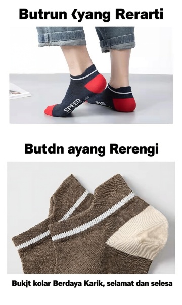 这是我在TIKTOK小店正在卖的男士护跟短袜,售卖国家是马来西亚,主要人群是全年龄段男同志,主要卖点是价格实惠,款式多样,细节到位,吸汗透气,轻薄,防臭,10双装才买24.5令吉,现在我希望出至少8张图片展示商品卖点,促进销售,要求:买点展示清晰,细节展示到位,有运动场景展示,有袜子穿上的效果展示,文案用马来西亚文,符合马来西亚民众的阅读习惯,如果你是一名资深的tk跨境电商美工,你会怎么设计这些图片,这些图片不要合成1张