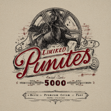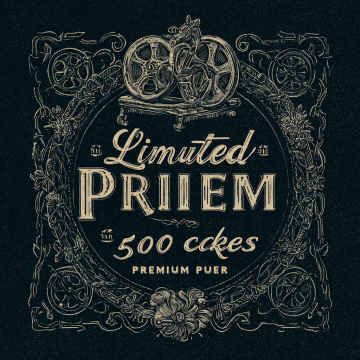 logo设计,电影胶片,俊马标志元素,细腻的线描,欧式复古徽章,复古徽标,版画风格,主体文字“限量发售500饼”,英文小字“臻藏普洱 ”矢量图案设计,复古质感,纯色极简背景,细节细腻,大师作品,高清。