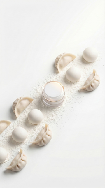 中式感十足的热腾腾饺子,实景质感细腻,质朴木桌与竹席营造温馨氛围,东亚风元素融合重拟物设计,水墨晕染般的蒸汽与木雕纹理相映成趣。