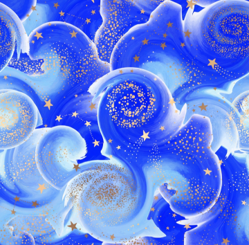 色彩斑斓的流体艺术背景,以蓝色、粉色、黄色和橙色为主色调,呈现出漩涡状的流动纹理和柔和的渐变效果,点缀着大小不一、颜色各异的五角星和金色闪光颗粒,整体风格梦幻、绚丽,充满动感和活力,画面中融入了更多形态各异的星云状花纹和细碎的光斑,营造出更加丰富的宇宙星空意境。