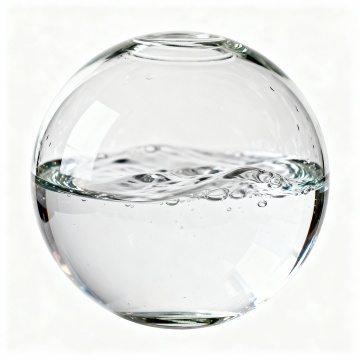 一个晶莹剔透的紫色水球悬浮在纯白色背景上,水球表面光滑且富有弹性,呈现出从深紫到浅紫的渐变光泽,球体内部有微小的气泡和流动的水纹,边缘有几滴水珠正飞溅出来,水珠大小不一,形态圆润,整体光影效果明亮,高光清晰,阴影柔和,营造出纯净、水润、梦幻的氛围,具有高度写实的3D质感和透明感。