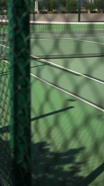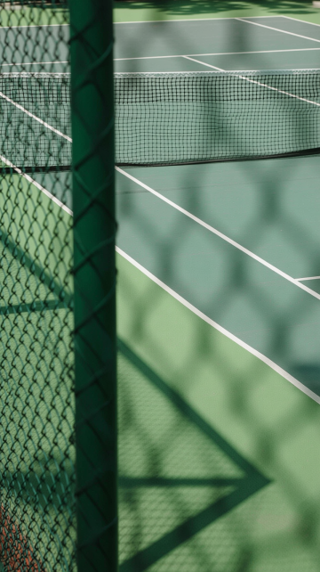 动漫风格插画,一位男性网球运动员正全力挥动球拍击球的瞬间,红色运动服搭配深色短裤,白色运动鞋与长袜,背景由大块面的蓝色、白色和红色几何色块构成,呈现出动态的倾斜角度和速度感,线条流畅且富有张力,整体色彩鲜明对比强烈,人物姿态舒展充满力量,画面传达出运动的激情与活力,扁平化设计语言,简洁而富有冲击力的视觉效果。