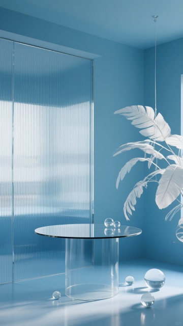 极简主义风格室内场景,柔和的米白色墙壁,自然光透过木质百叶窗和米色垂坠窗帘洒入,浅灰色木地板上铺着带有细腻波浪纹理的浅色地毯。房间中央是一张造型圆润、线条流畅的白色羊羔绒单人沙发,搭配一个橄榄绿色的方形靠垫。沙发旁是一个白色圆柱形边桌,桌面上摆放着一本翻开的书和一个插有细枝绿植的透明玻璃花瓶。沙发后方墙上悬挂着一幅现代抽象画,画作以棕色、米色、白色和橙色的大胆笔触构成,带有明显的颜料肌理感。右侧是嵌入式浅木色置物架,其中一层放置着一个透明玻璃花瓶,里面插有绿色植物。整体色调温暖柔和,光影层次丰富,营造出宁静、舒适、简约而不失格调的居住氛围,空间布局通透,细节处理精致,具有现代简约的高级设计感。