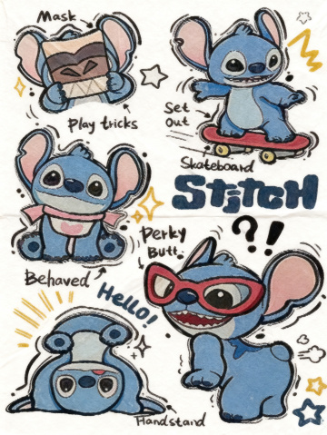 史迪奇在海浪中冲浪,可爱清新,充满夏日欢乐氛围。