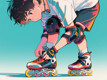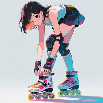 清新甜美动漫风,双马尾少女身着彩虹裙,背景简约建筑,整体可爱感十足。