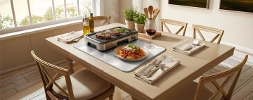 现代简约风3D渲染,重拟物设计呈现真实质感,塑料光泽与木质厨房融合,营造温馨舒适实景感,节日家宴氛围浓郁。