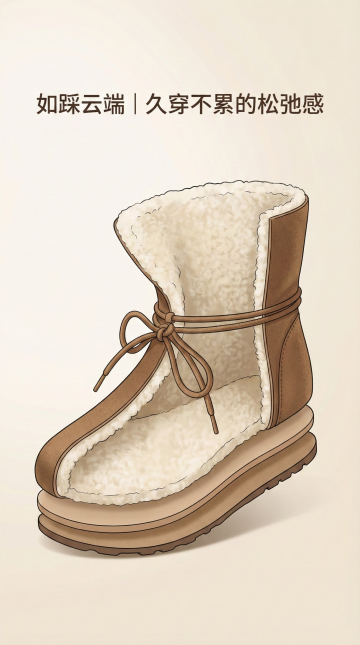 【保养与须知】 视觉: 简洁的图标化排版。配以护理工具(绒面刷、护理喷雾)和鞋子的小图。 文案标题: 「让它陪你更久一些」 核心信息: 避免暴晒与水浸。 专用绒面刷打理。 首次穿着建议穿袜,适应足弓支撑。