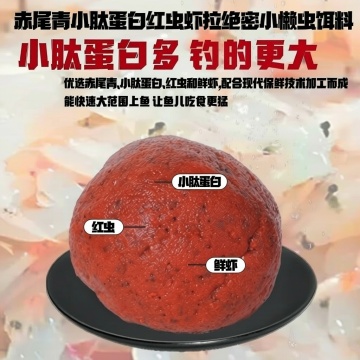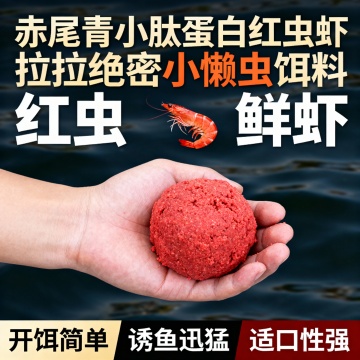 这个产品品名是 赤尾青小肽蛋白红虫虾拉绝密小懒虫饵料 凸显出来 赤尾青 小肽蛋白 红虫 鲜虾 作五张商品主图,像后面两张的那种,再根据上面的升级版材料把后两张图片改一下