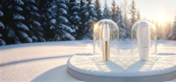 梦幻雪夜圣诞场景,3D微缩艺术风呈现温馨喜庆氛围,塑料质感唇釉置于雪橇之上,搭配玻璃感礼盒与发光彩灯,营造可爱趣味的虚拟现实节日美学。