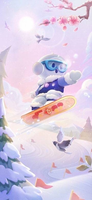 卡通感插画风,扁平设计搭配波普艺术色彩,大字标题呼应潮流与喜庆氛围,展现滑雪狂欢季的动感活力。