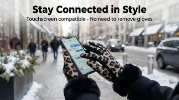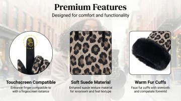 这款商品为女士麂皮豹纹触屏手套,销售到美国,语言是英语,帮我生成一组亚马逊套图。比例 「16:9」