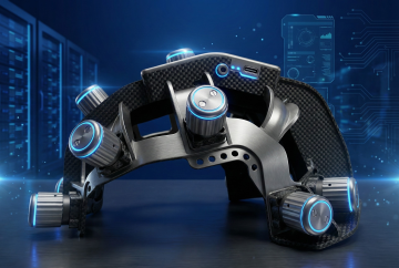 脑机接口,未来感十足的3D机械头盔,融合科技与工业设计,金属质感搭配蓝色光效,展现虚拟现实中的机能美学。