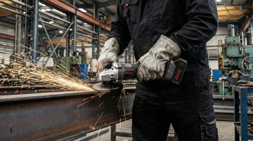现代化工业场景,蓝色为主色调,清新明亮的光线,干净整洁的生产线,透明玻璃幕墙外是蓝天白云,绿色植物点缀在车间角落,机械臂精准运作,地面反光如镜,整体氛围充满科技感与希望